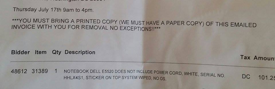 S: it was Living Social. They were liquidating from their 9th street office. That’s why I tried reaching out to them. Thought it made sense to let them know and I could bring it back to them so they could wipe it.